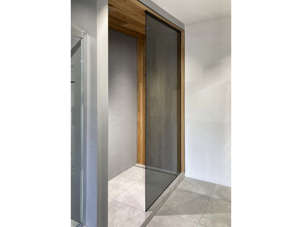 ARCHITEX jsou elegantní walk-in sprchové zástěny bez rušivých kotvících profilů. Neviditelné uchycení skleněné zástěny umožňují profily zasazené pod keramický obklad. Skleněná tabule a stropní profil se usazují až po finálním vyspárovaní keramického obkladu.