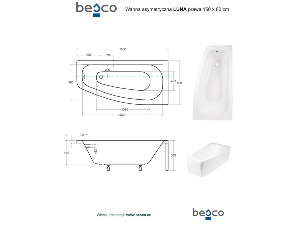 Asymetrická vana LUNA vyniká vysoce kvalitním zpracováním a spolehlivou funkčností všech součástí a materiálů.