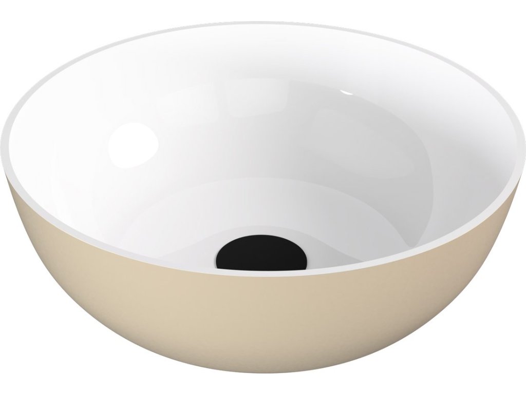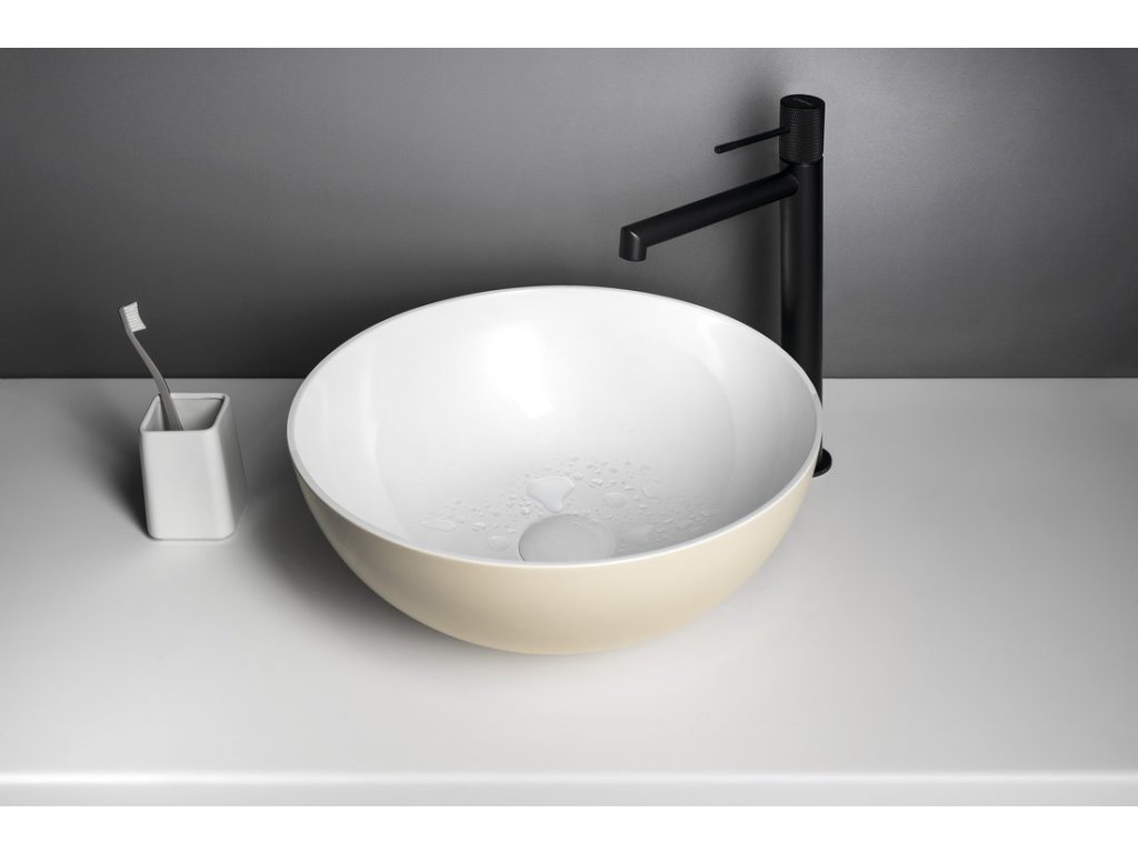 BANERA ROUND umyvadlo na desku, litý mramor, průměr 39cm, bílá/béžová mat + slevový kód