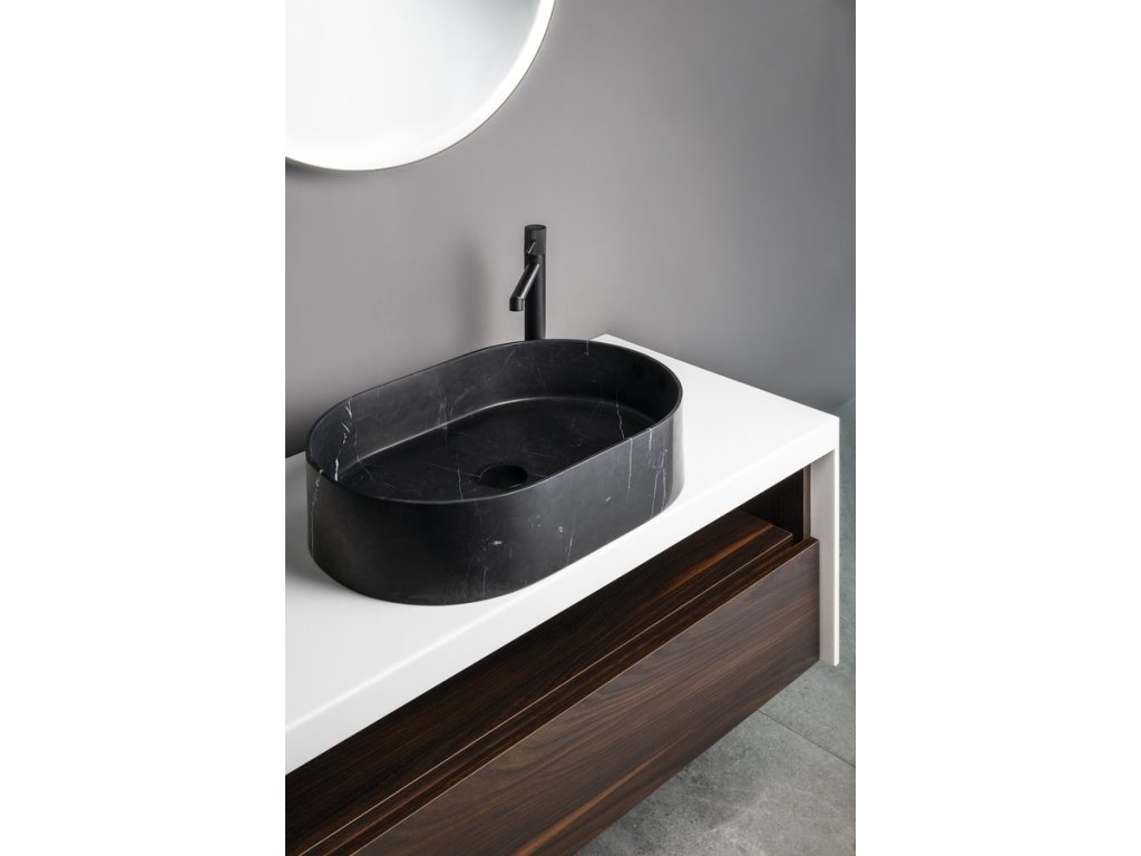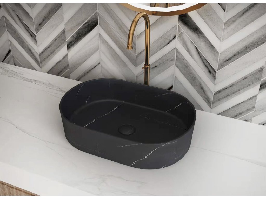 BLOK kamenné umyvadlo na desku, 55x37cm, matný černý Marquin + slevový kód