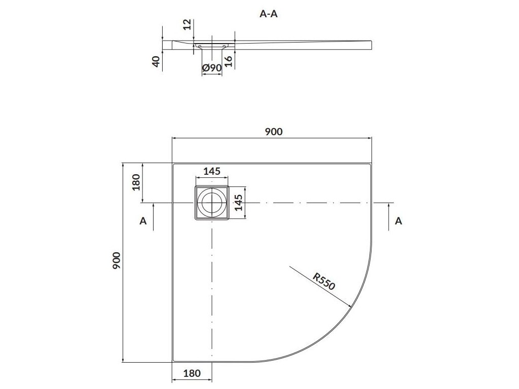 SET B453 SPRCHOVÁ VANIČKA ČTVRTKRUH TAKO SLIM 90x4 GRAY MAT + SIFON (S932-160)