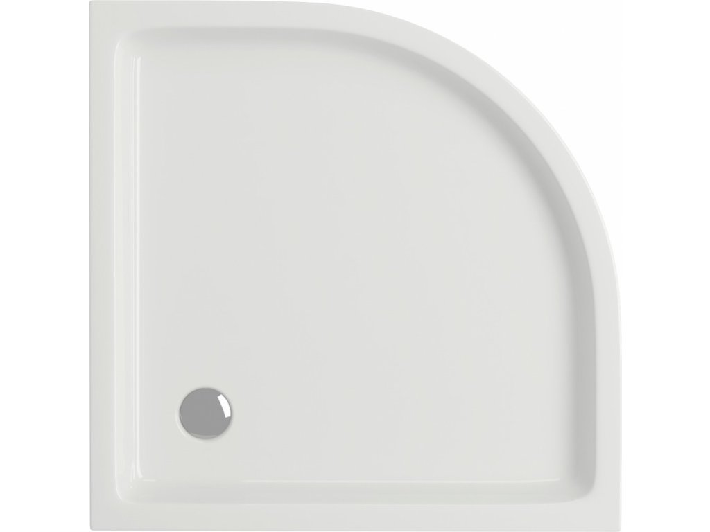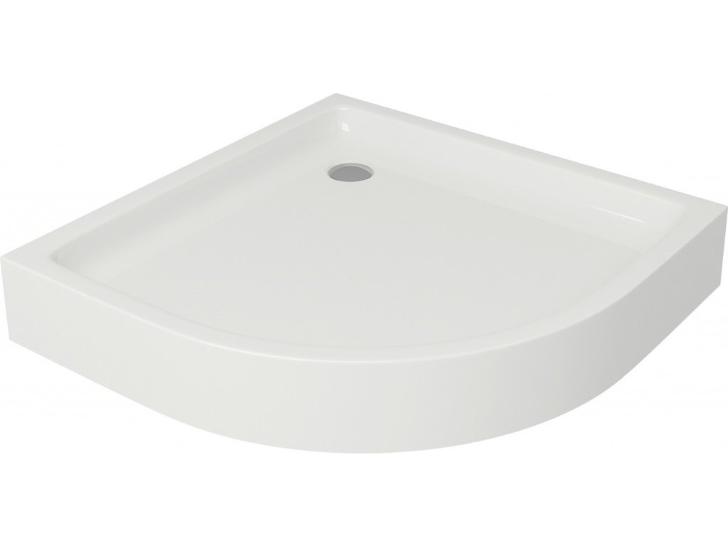 Sprchová čtvrtkruhová vanička TAKO prodávaná s nastavitelnými nožičkami. Možnost dokoupení nerezového vaničkového sifonu.