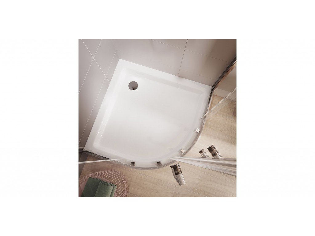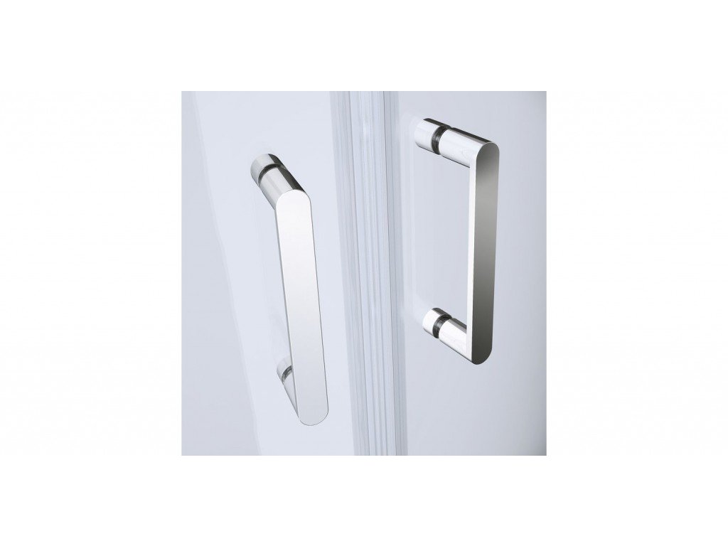 Čtvrtkruhový sprchový kout značky CERSANIT s hliníkovým profilem v chromovém provedení, doplněný dvoubodovými madly. Výplní je čiré sklo s povrchovou úpravou EASY CLEAN o síle 5 mm.