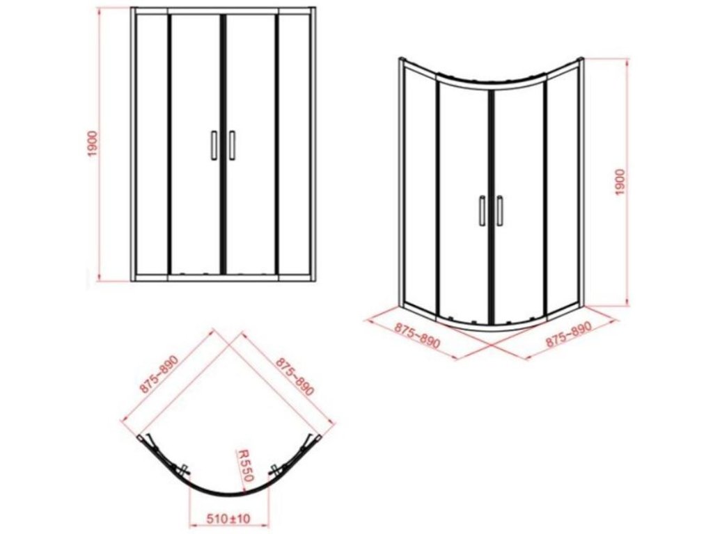 SPRCHOVÝ KOUT ČTVRTKRUH 90X190 TRANSPARENT SKLO (S154-002)