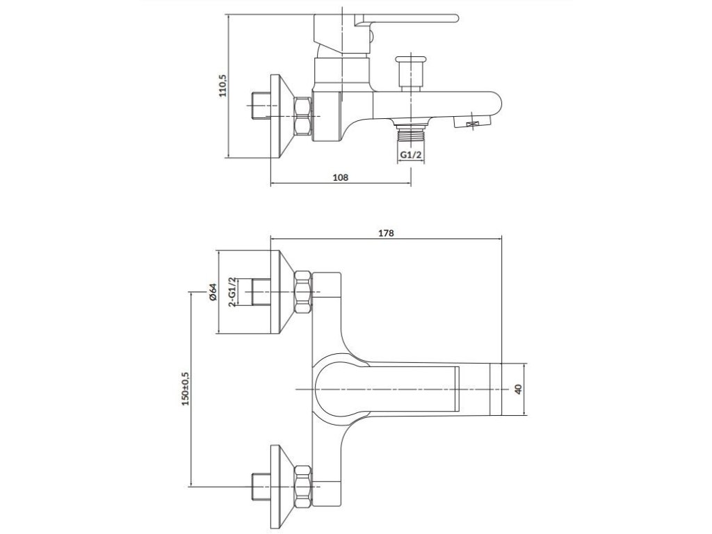 Vanová nástěnná baterie VERSO s přepínačem, chrom (S951-402)