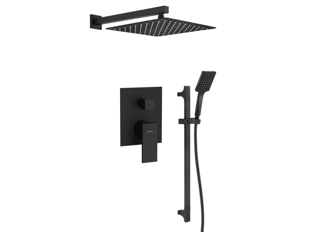 CUBEMIX podomítkový sprchový set s pákovou baterií, 2 výstupy, posuvný držák sprchy, černá mat + slevový kód, + prodloužená záruka