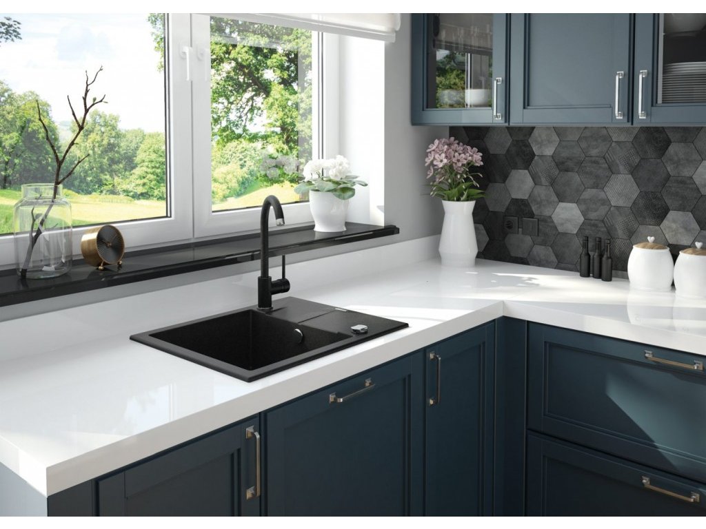 Kuchyňský granitový dřez odolný vůdči poškrábání, teplotním šokům a nárazům. Směs přírodní pryskyřice a hustého granitu.