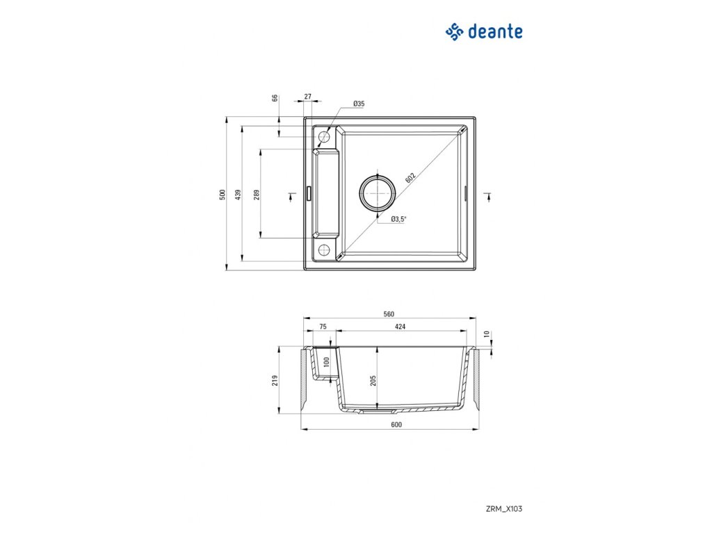 - Dřez je vybaven příslušenstvím s připojením na myčku