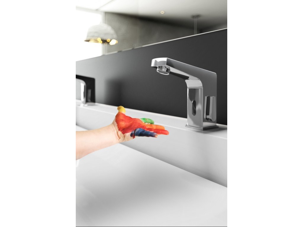 Koupelnová umyvadlová baterie Deante je kombinací skvělého designu a funkčních ekologických řešení. Tělo je vyrobeno z kvalitní mosazi, která zajišťuje bezproblémové používání po celá léta. Baterie nemá klasickou páku, protože se zapíná a vypíná bez dotyku. Vestavěný senzor snímá pohyb ruky pod výlevkou a reaguje na jeho přítomnost. Fungovat bude jak na veřejných místech, tak v soukromých koupelnách, kde obyvatelé dbají na ekologii a šetří vodu i peníze. Jedná se o teplotně řízený model. Napájení 230/6V.- Tělo baterie je vyrobeno z nejkvalitnější mosazi