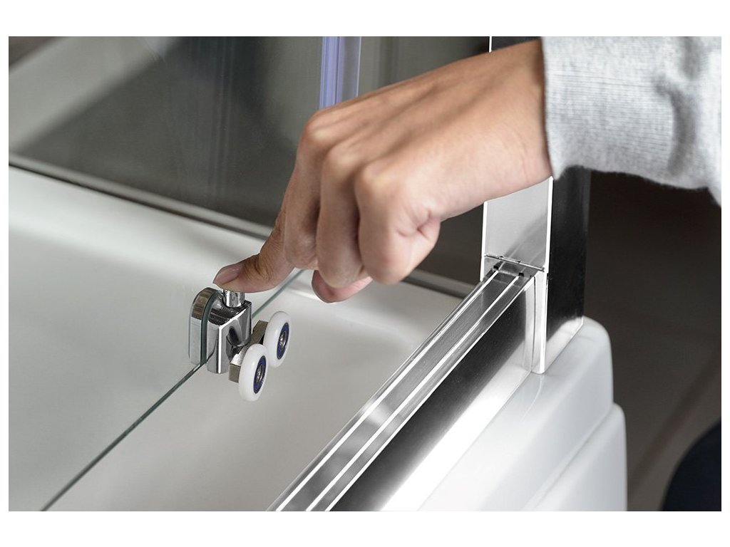 - Dveře jsou děleny na část posuvnou a část pevnou - umožňují variabilní instalaci s levým nebo pravým otevíráním