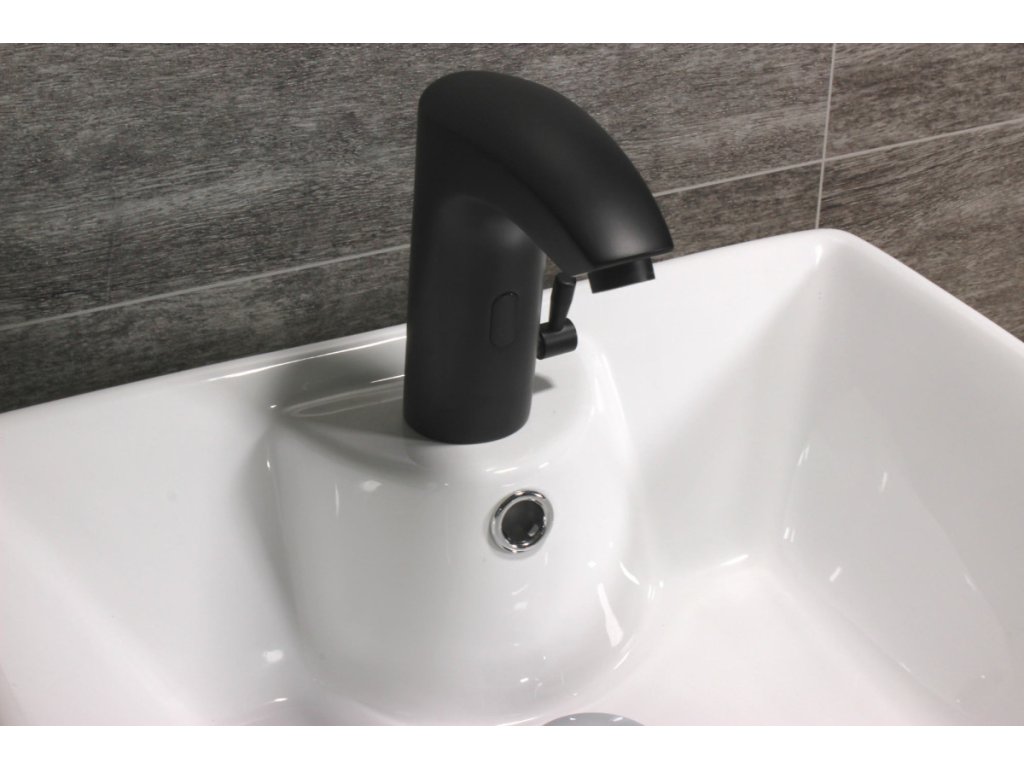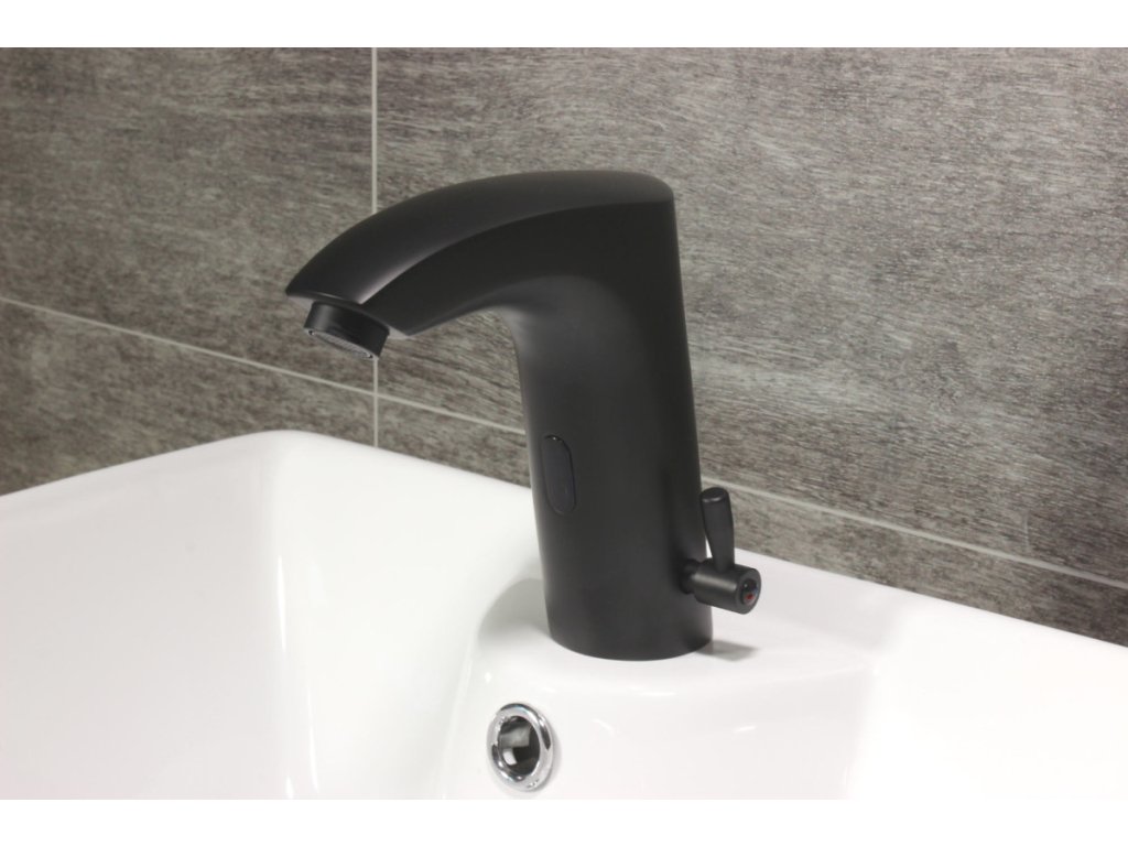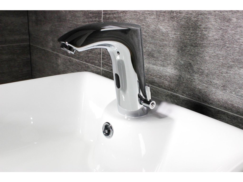 Po přiblížení ruce do blízkosti čidla dojde k automatickému spuštění proudu vody. Teplotu vody je možné pohodlně nastavit pomocí páčky umístěné na pravé straně. Jakmile oddálíte ruce z blízkosti čidla, dojde k zastavení vody do 1,5 sekundy. Baterie je vybavena funkcí automatického zastavení vody po několika minutách, pro případ trvalého zakrytí čidla.