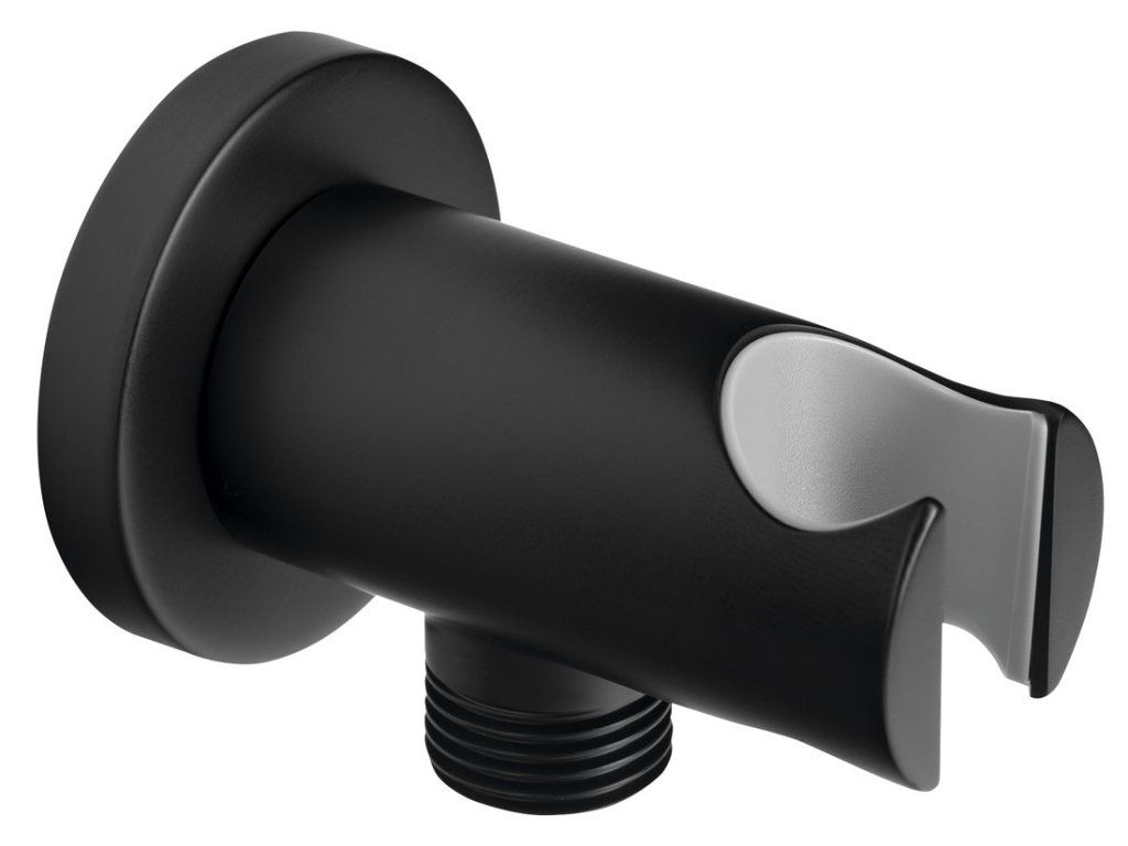 Držák sprchy kulatý, pevný, s vyústěním, černá mat