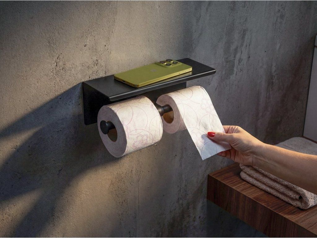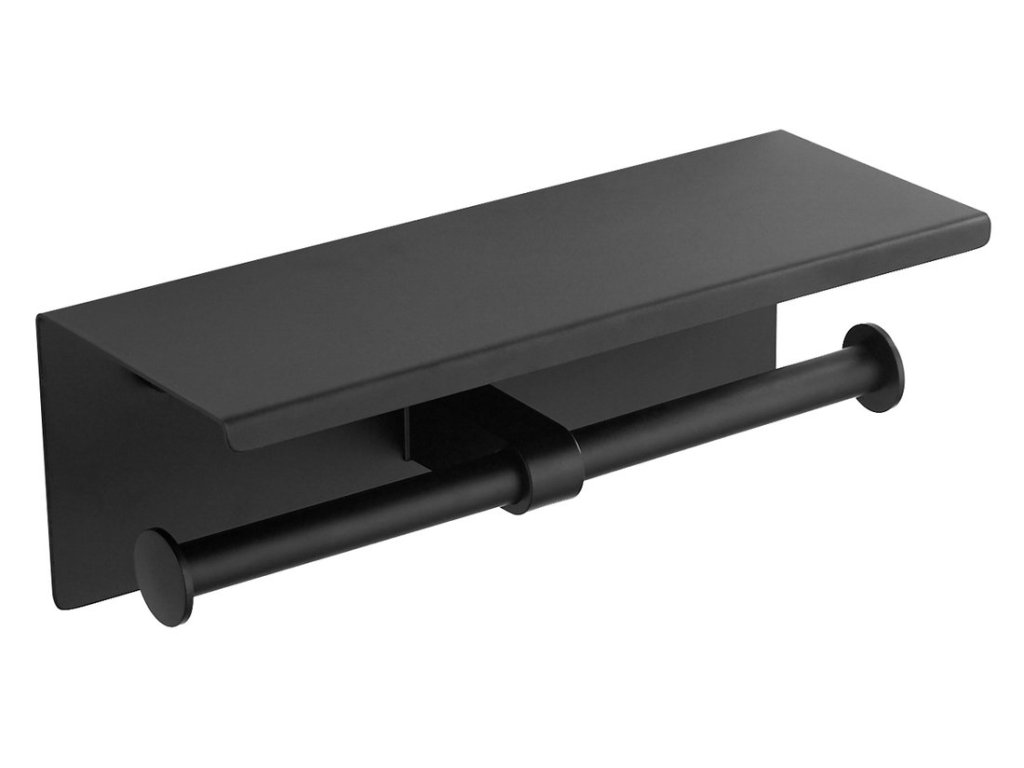 Dvojitý držák toaletního papíru s poličkou 30cm, černá mat
