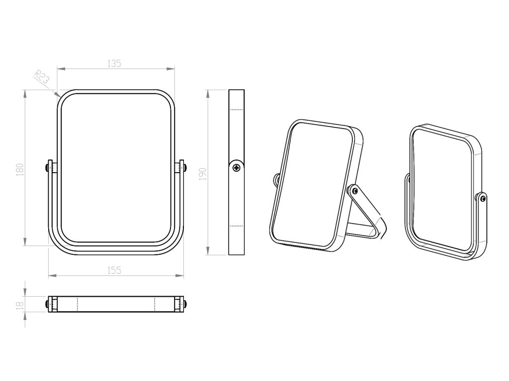 ELENA kosmetické zrcátko na postavení, 180x135mm, oboustranné, bílá