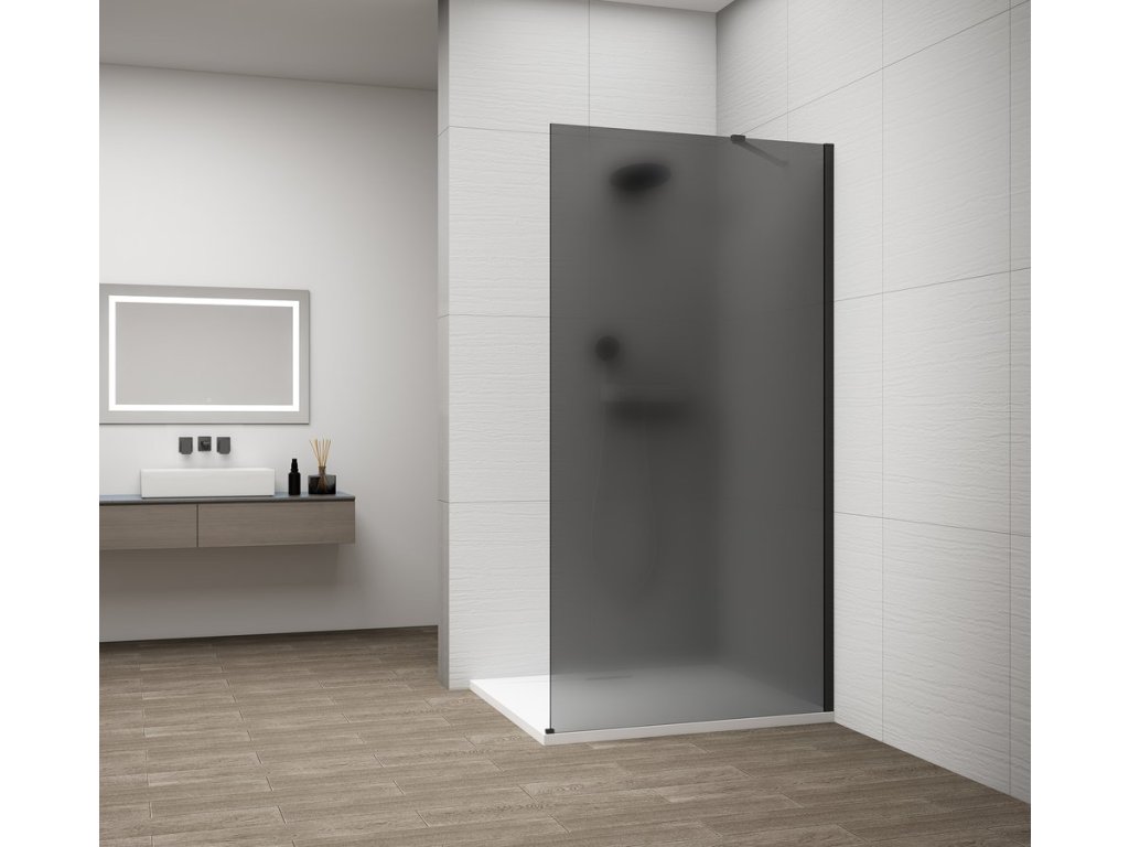 ESCA BLACK MATT jednodílná sprchová zástěna k instalaci ke stěně, kouřové matné sklo, 1000 mm + slevový kód