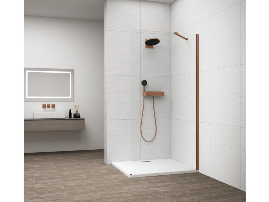 ESCA COPPER MATT jednodílná sprchová zástěna k instalaci ke stěně, sklo čiré, 1200 mm
