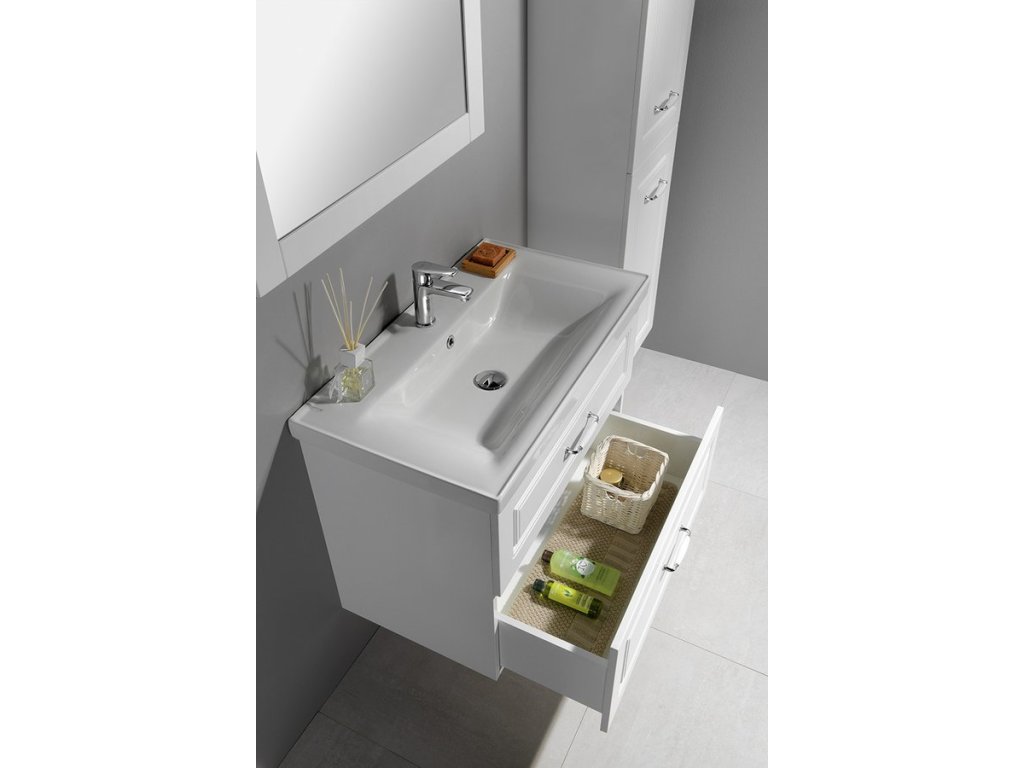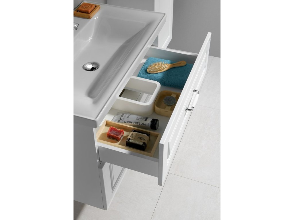 FAVOLO je klasická série koupelnového nábytku s decentně frézovaným dekorem na čelech zásuvek a dvířkách v bílém matném provedení. Umyvadlové skříňky lze kombinovat se zrcadly a doplňkovými skříňkami ve stejném stylu a odstínu. Elegantní umyvadla podtrhují vzhled celé série, která se hodí nejen na chalupu či do činžovního domu ze začátku 20. století.