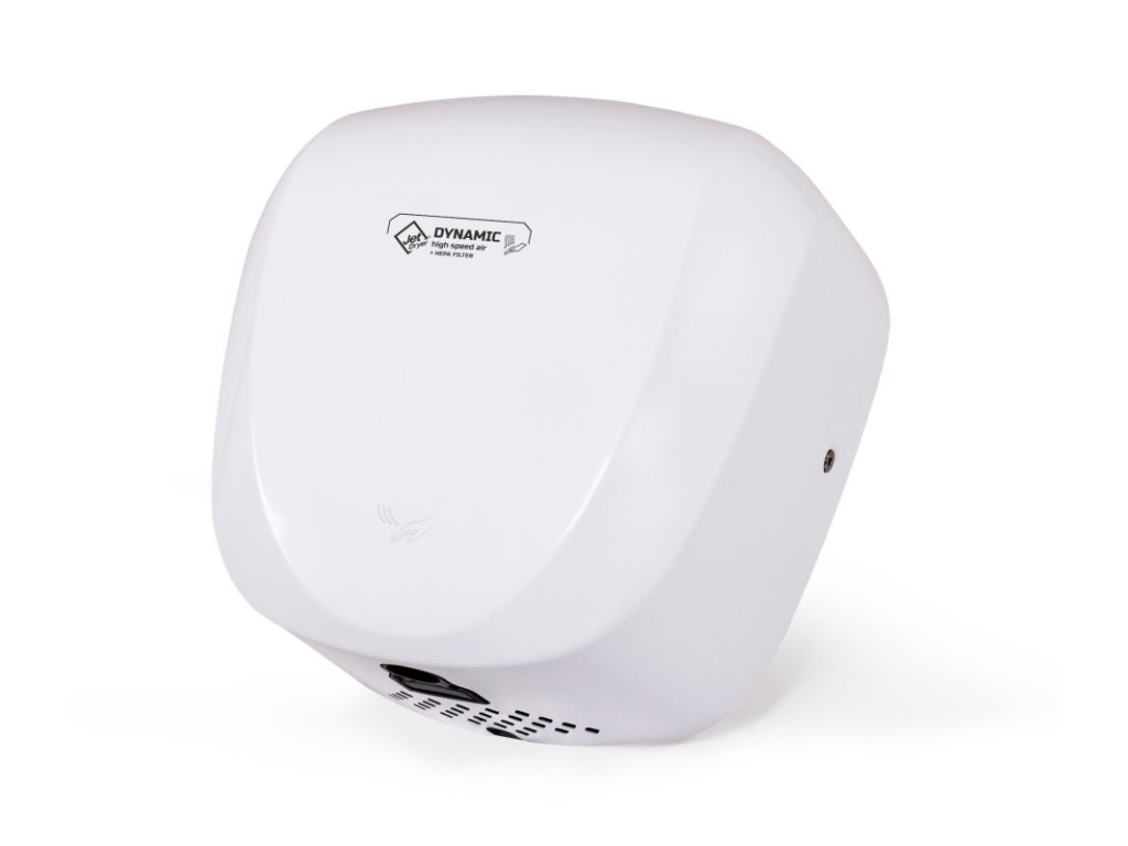 DYNAMIC je jediný osoušeč rukou z řady Jet Dryer vybavený HEPA filtrem. Silně dimenzovaný motor v prostorném kovovém krytu předurčuje tento osoušeč do provozů s velmi frekventovaným provozem. Ohřev vzduchu se spíná automaticky dle okolní teploty.