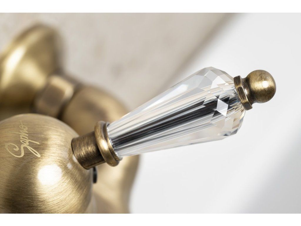Vodovodní baterie KIRKÉ CRYSTAL se svým designem řadí mezi baterie, které můžete použít jak v koupelně moderní, tak i v koupelně zařízené v retro stylu. Oproti kohoutkovým retro bateriím poskytují výhodu v pákovém ovládání. Proto je mnohem snadnější nastavit teplotu i průtok vody. Baterie mají také mnoho „tváří“ ve smyslu barevného provedení. V naší nabídce je naleznete v chromu, bronzu a zlatě. Baterie se pyšní páčkou s krystalem Swarovski.