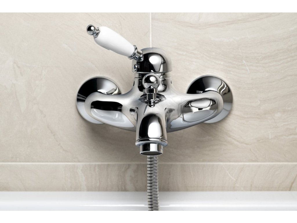 KIRKÉ WHITE nástěnná vanová baterie, bílá páčka, chrom