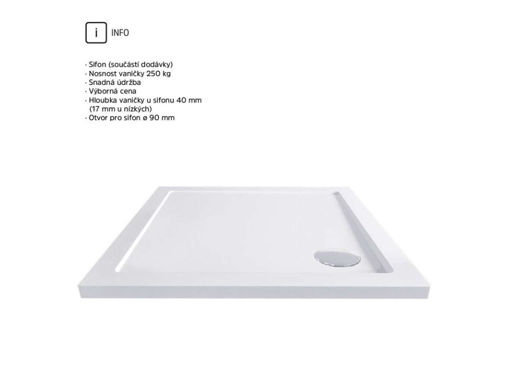 Kora Lite sprchový set: sprchový kout 90x90x185 cm, chrom ALU, sklo čiré, 90 cm, vanička, sifon