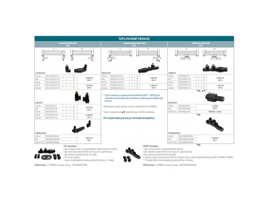 Radiátor lze objednat s příplatkovou výbavou Příplatek - Elektrický radiátor a díky tomu dostanete čistě elektrický radiátor (s již osazenou topnou tyčí HOT a naplněný speciální nemrznoucí teplonosnou směsí do otopných těles). Elektrické radiátory nejsou připojeny na rozvody TUV, snadno ho zapojíte pouze do elektrické zásuvky a užíváte si teplo v koupelně kdykoliv chcete.