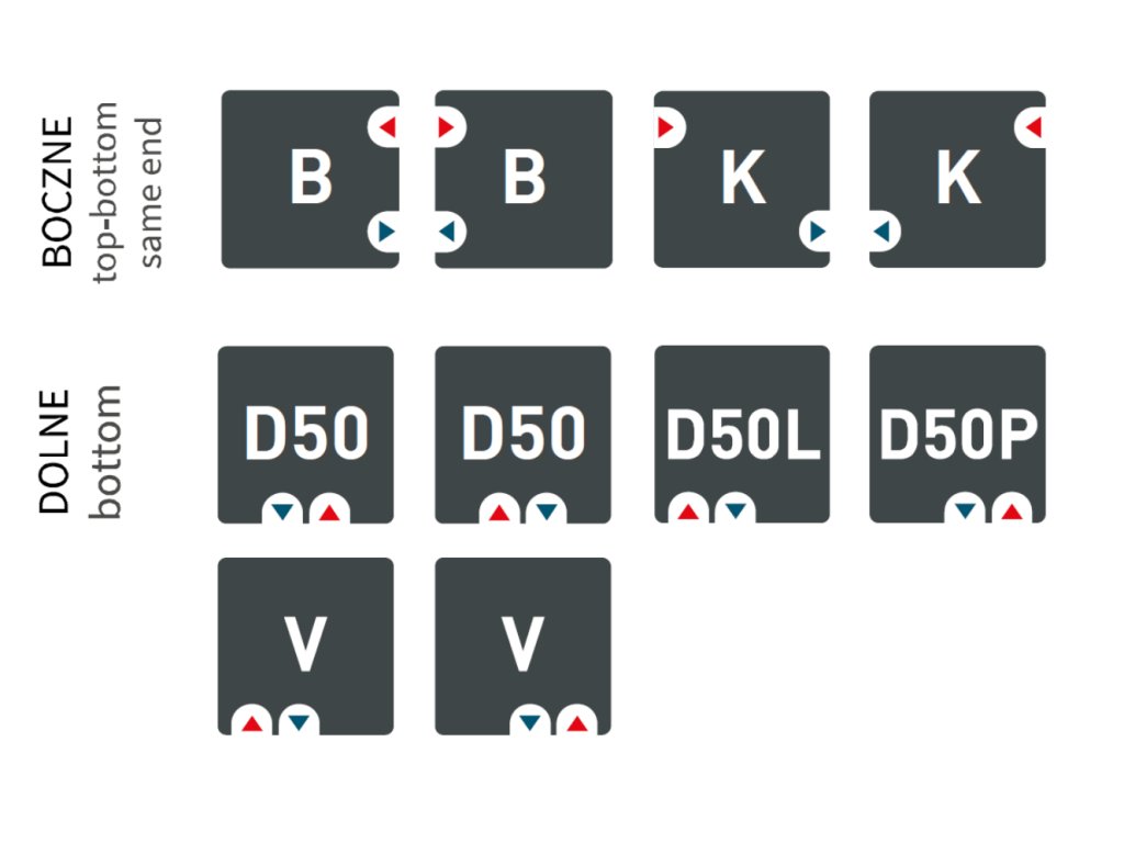 Radiátor je dodáván jak s bočním, tak i se spodním připojením D50. U spodního D50 je připojení standardně umístěno ve středu radiátoru, ale lze i případně nechat vyrobit s umístěním na pravé nebo levé straně radiátoru (nutno uvést do objednávky)