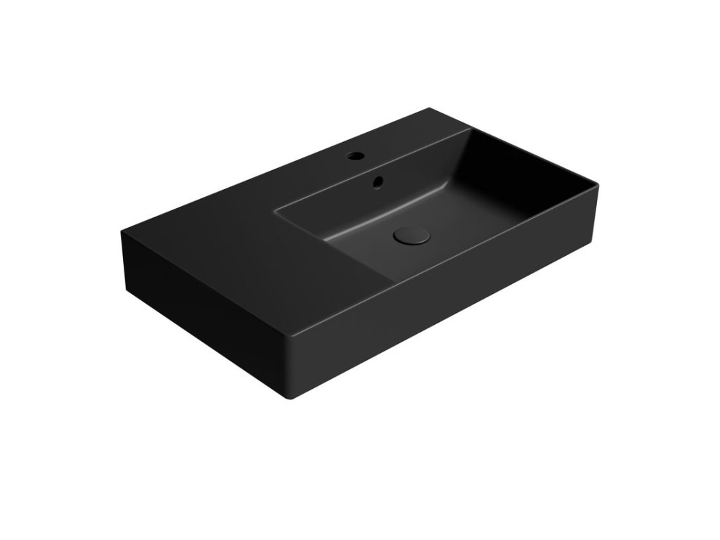 KUBE X keramické umyvadlo 80x47cm, s odkládací plochou vlevo, černá mat + slevový kód