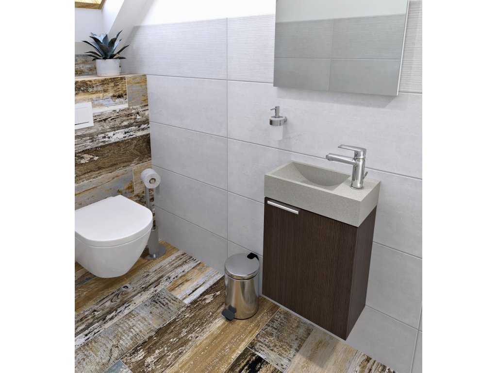 Malé rozměry koupelnového nábytku LATUS umožňují instalaci především do stísněných prostor, obzvláště na toalety. Skříňka se přímo nabízí k uskladnění čistících a hygienických prostředků nebo toaletního papíru. Umyvadlo z litého mramoru nebo keramiky vytváří se skříňkou kompaktní celek. V nabídce je jak několik tvarů umyvadel, tak barevných dekorů skříněk pro větší kompatibilitu.
