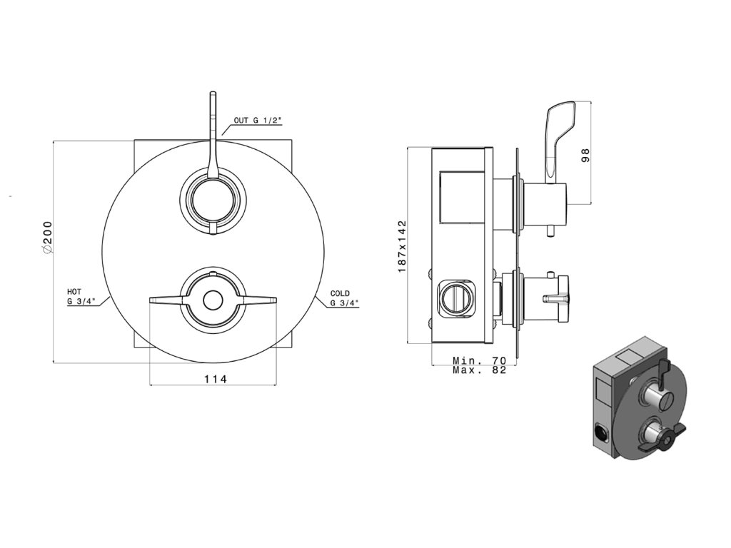 KIMURA podomítková sprchová termostatická baterie, box, 3 výstupy, chrom je luxusním doplňkem pro vaši koupelnu. Tato baterie kombinuje moderní design s vysokou funkčností a...