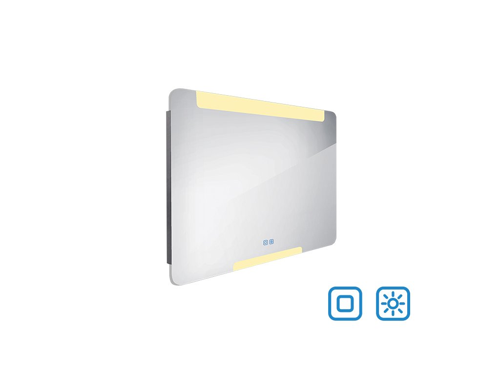Zrcadlo do koupelny 90x70 cm s osvětlením nahoře a dole, dotykový spínač je skvělým doplňkem do koupelny. Zrcadla do koupelny NIMCO vynikají kvalitním zpracováním a moderním designem. Svícení za použití akrylátového skla plexiglass. Konstrukce je z hliníkového rámu 32x19 mm, sklo zrcadla o tloušťce 5 mm. Připojení 220-240 V. Zapínání / vypínání / ovládání dotykovým senzorem s pamětí. Možnost nastavení barevné teploty svícení a intenzity svítivosti. Životnost LED diod je až 50 000 hodin. Ochrana IP 44.Koupelnové podsvícené LED zrcadlo