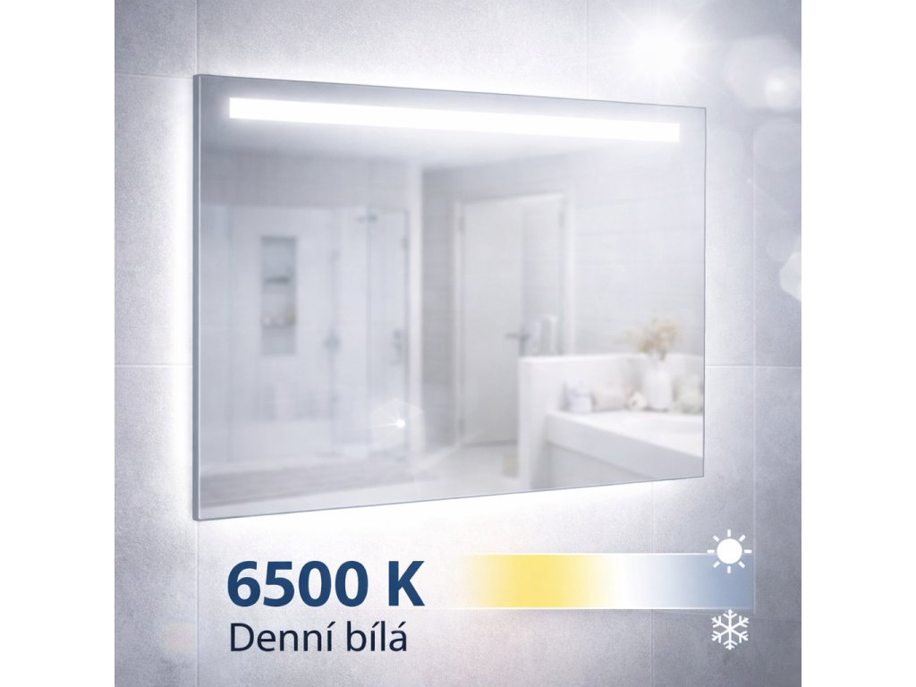 Zrcadlo Naturel využívá pokročilou LED technologii s teplotou 6500 K (denní bílá). Toto světlo je navrženo tak, aby věrně simulovalo jasný den, což oceníte při precizních úkonech, jako je líčení, holení nebo úprava vlasů. Duální systém osvětlení kombinuje horní svítící pruh pro přímé nasvícení obličeje a spodní podsvícení, které vytváří náladový efekt na stěně a umyvadle.