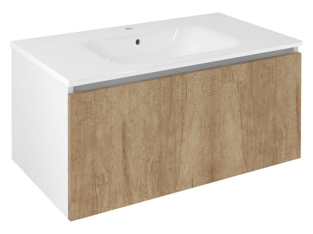 LOREA umyvadlová skříňka 90x44x51,2cm, 1x zásuvka, dub alabama/bílá mat