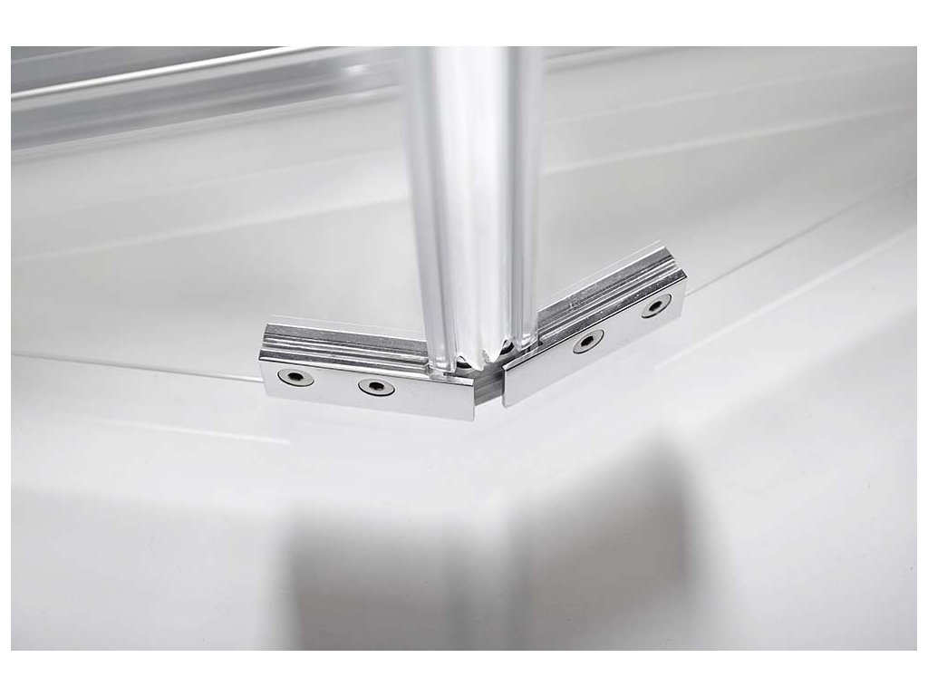 - Zástěny jsou dodávány v částečně smontovaném stavu (skla jsou zasazena do hliníkových profilů)