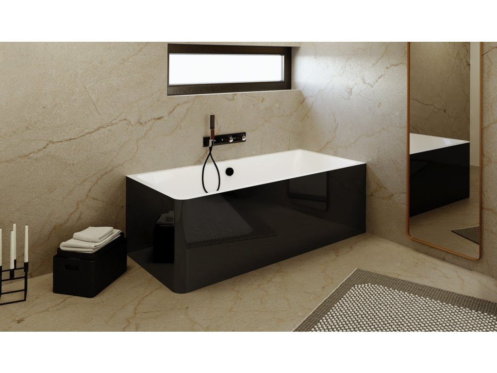 MARLENE CURVE R MONOLITH obdélníková vana 165x75x63cm, bílá/černá + slevový kód, + prodloužená záruka