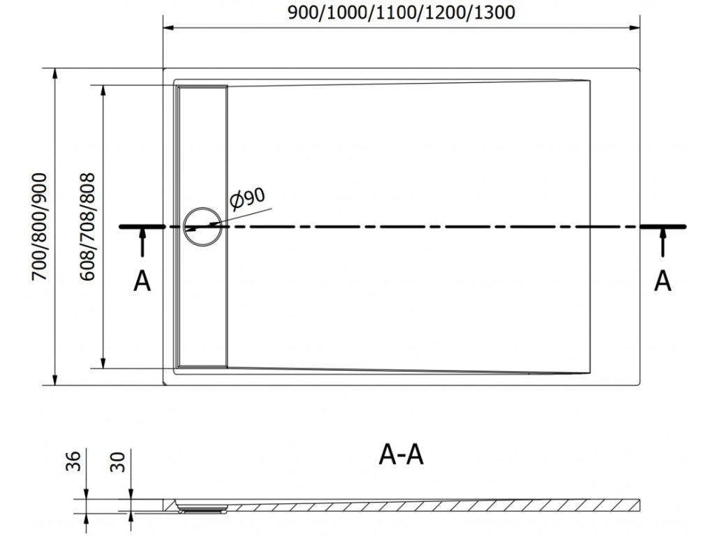 MEXEN - Amon obdélníková sprchová vanička SMC 90 x 80, černá 4F708090