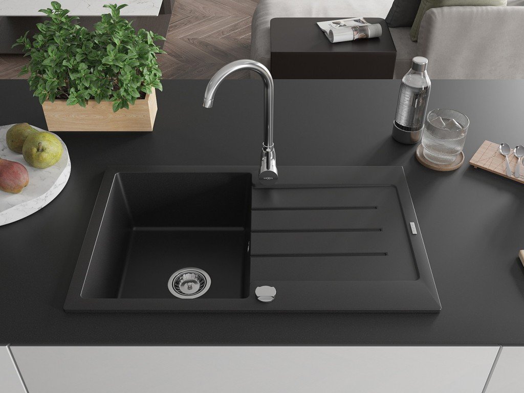 Kuchyňský granitový dřez odolný vůdči poškrábání, teplotním šokům a nárazům. Směs přírodní pryskyřice a hustého granitu.