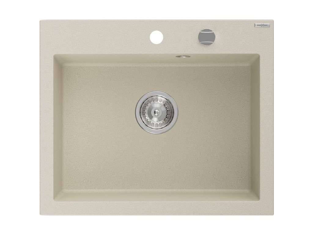 MEXEN - Elix granitový dřez 1-miska 600 x 500 mm, béžový, sifon chrom 6525601005-69