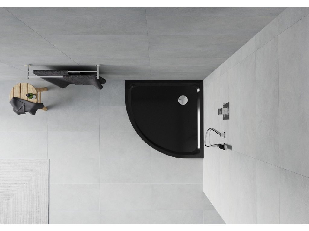 MEXEN - Flat sprchová vanička čtvrtkruhová slim 100 x 100, černá 41701010