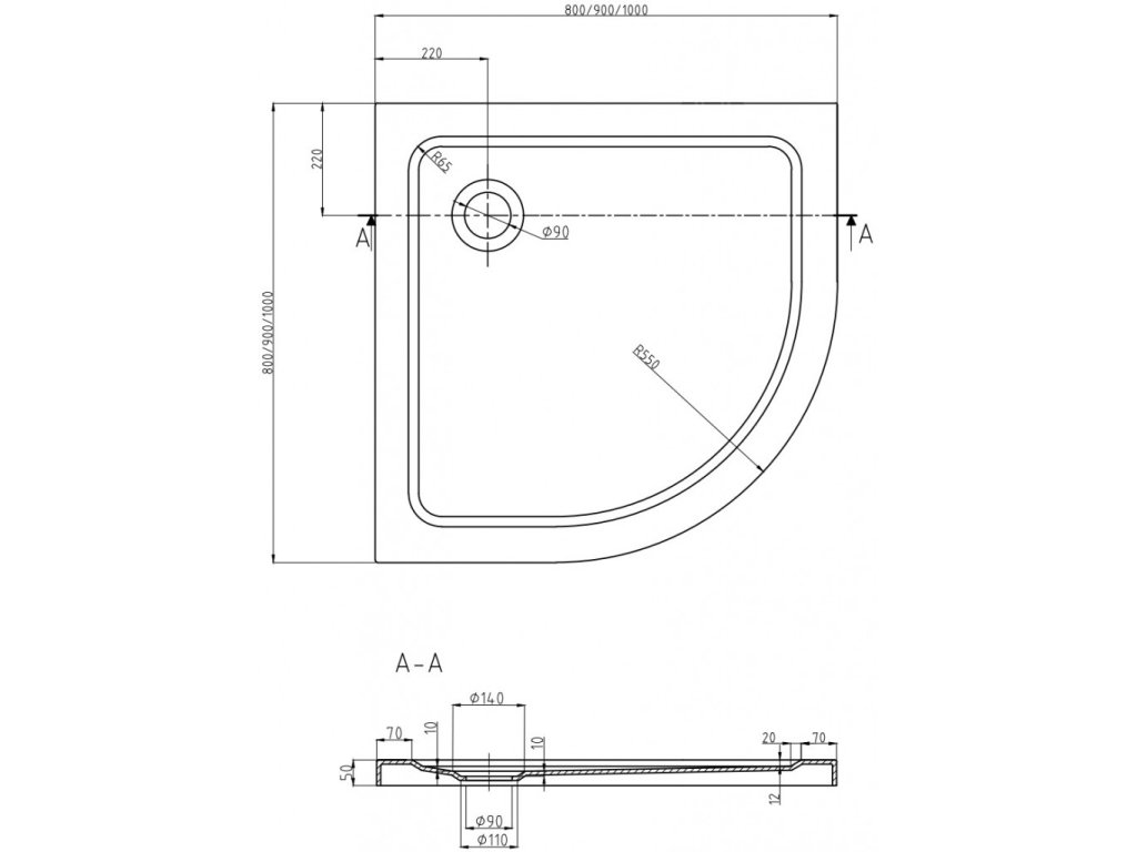 Průměr odtoku: 90 mm