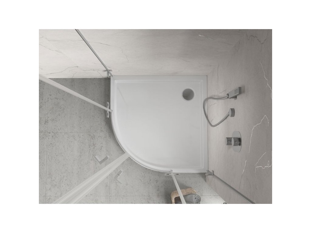 Specifikace produktu: Rozměr: 90x90x12 cm Poloměr zaoblení R55 Barva: Lesklá bílá Typ: Půlkruhový Materiál: Sanitární akrylát Zesílené dno Průměr odtoku: 90 mm Sprchová vanička neobsahuje sifonDoplňkové parametry