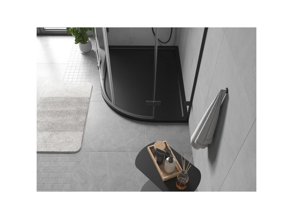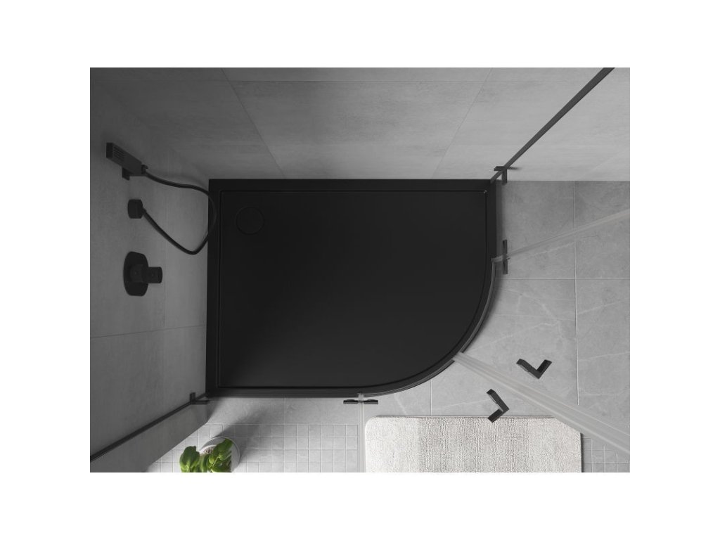 MEXEN - Flow Sprchová vanička čtvrtkruh asymetrická slim levá 100 x 80, černá mat 46Q708010L
