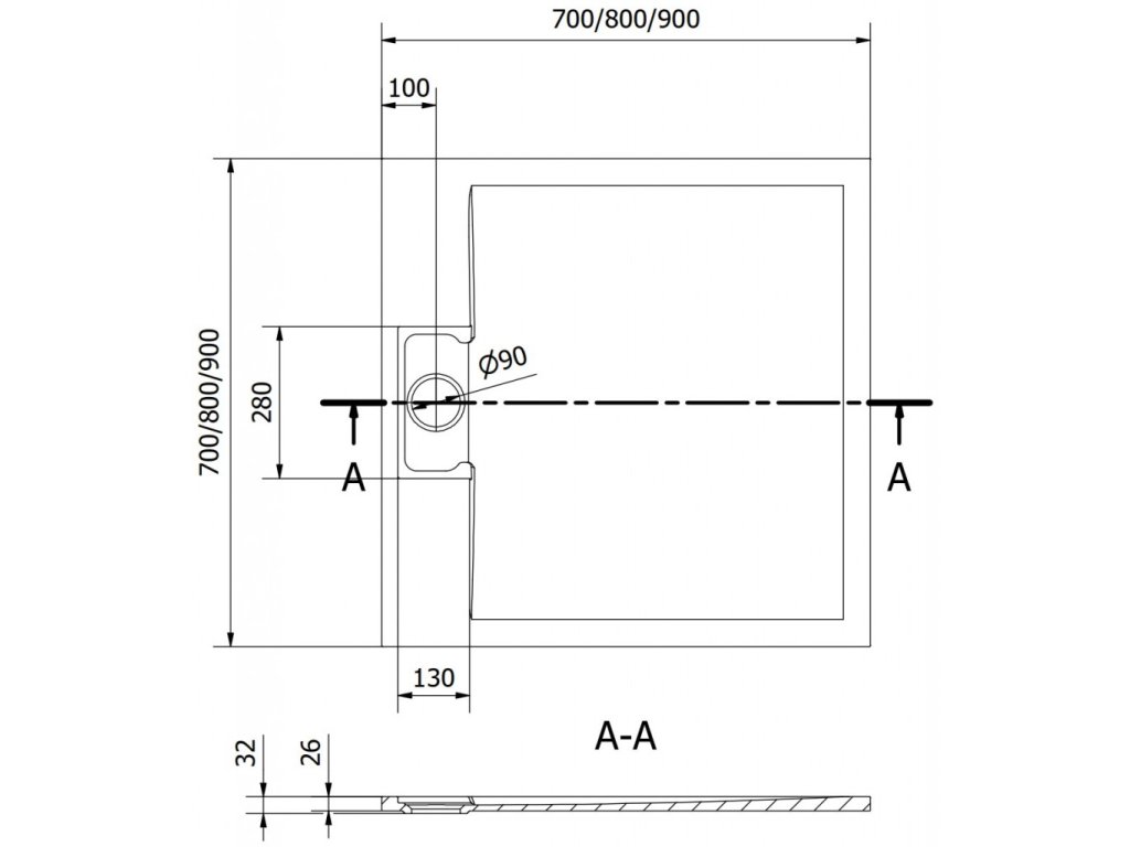 Průměr odtoku: 90 mm