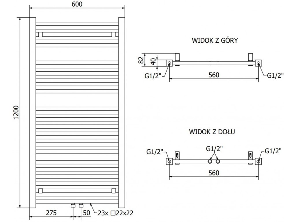 MEXEN - Pluton otopný žebřík/radiátor 1200 x 600 mm, 718 W, černá W106-1200-600-00-70