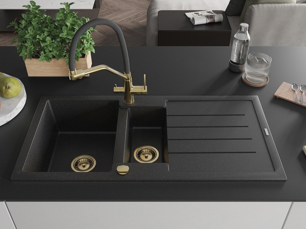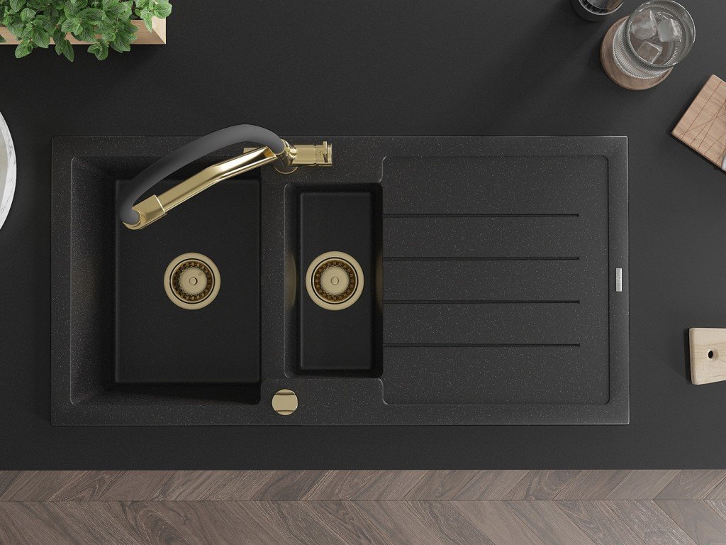 MEXEN/S - Andres granitový dřez s odkapávačem včetně baterie Duo, černá/stříbrná 6515-73-671701-57-G