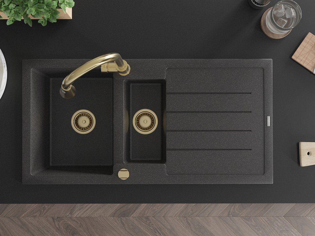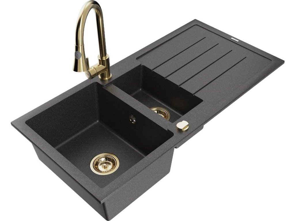 MEXEN/S - Andres granitový dřez s odkapávačem včetně baterie Elia, černá nakrapiany 6515-76-670101-50