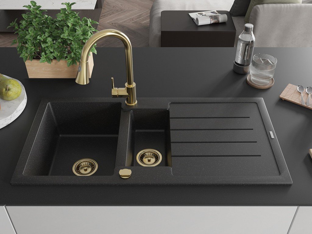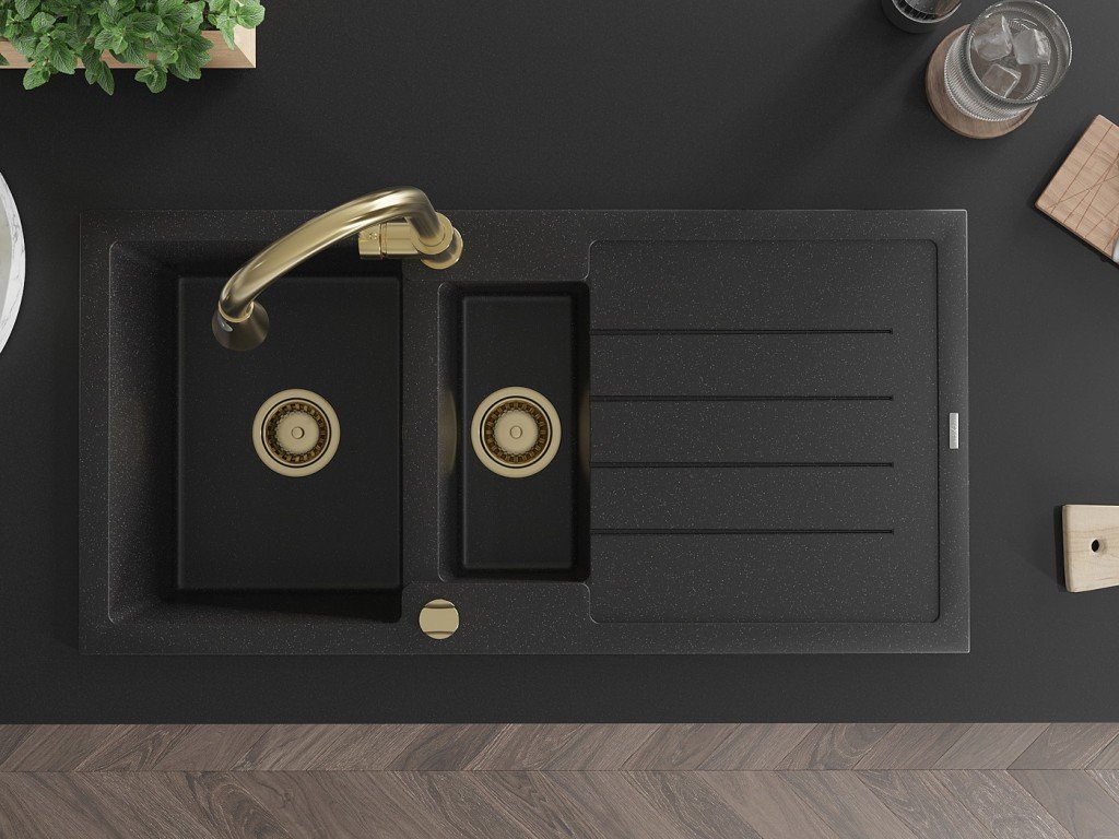 MEXEN/S - Andres granitový dřez s odkapávačem včetně baterie Elia, černá/stříbrná metalik 6515-73-670101-50