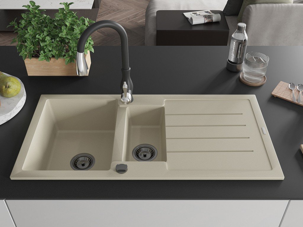 Prodajte svoju kuchyňu do nového štýlu s našim Milo granitovým drezom s jednou misou, spolu s modernou batériou Rita v elegantnej čiernej farbe. Tento set, ktorý nesie kód...