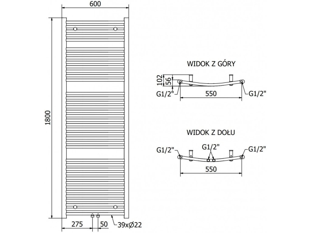 Celková délka ohřívače: 1039 mm