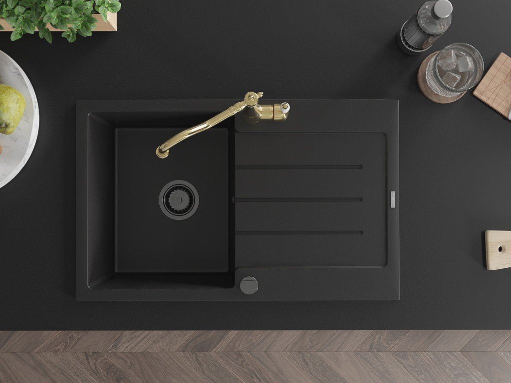 Kuchyňský granitový dřez odolný vůdči poškrábání, teplotním šokům a nárazům. Směs přírodní pryskyřice a hustého granitu.